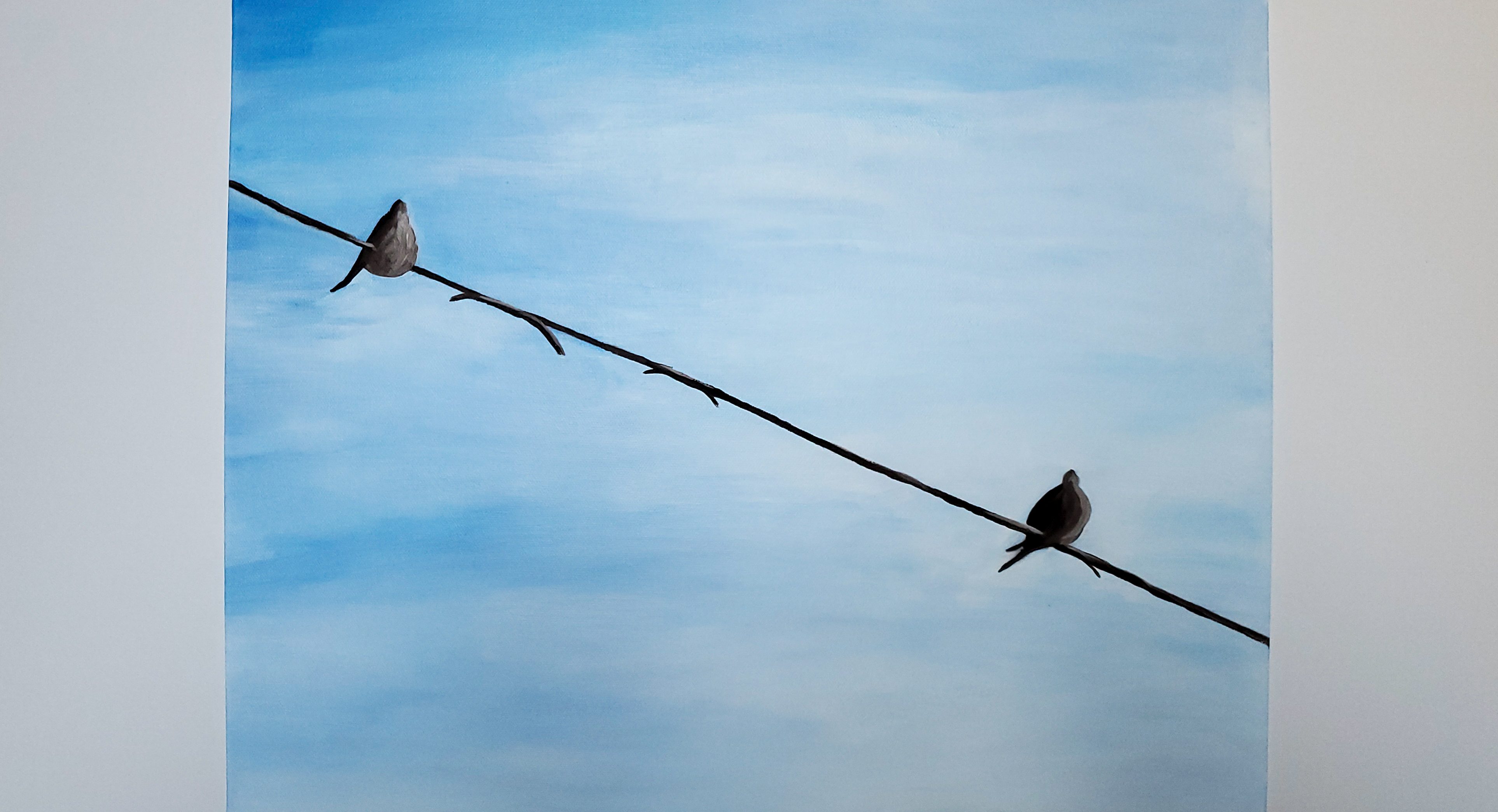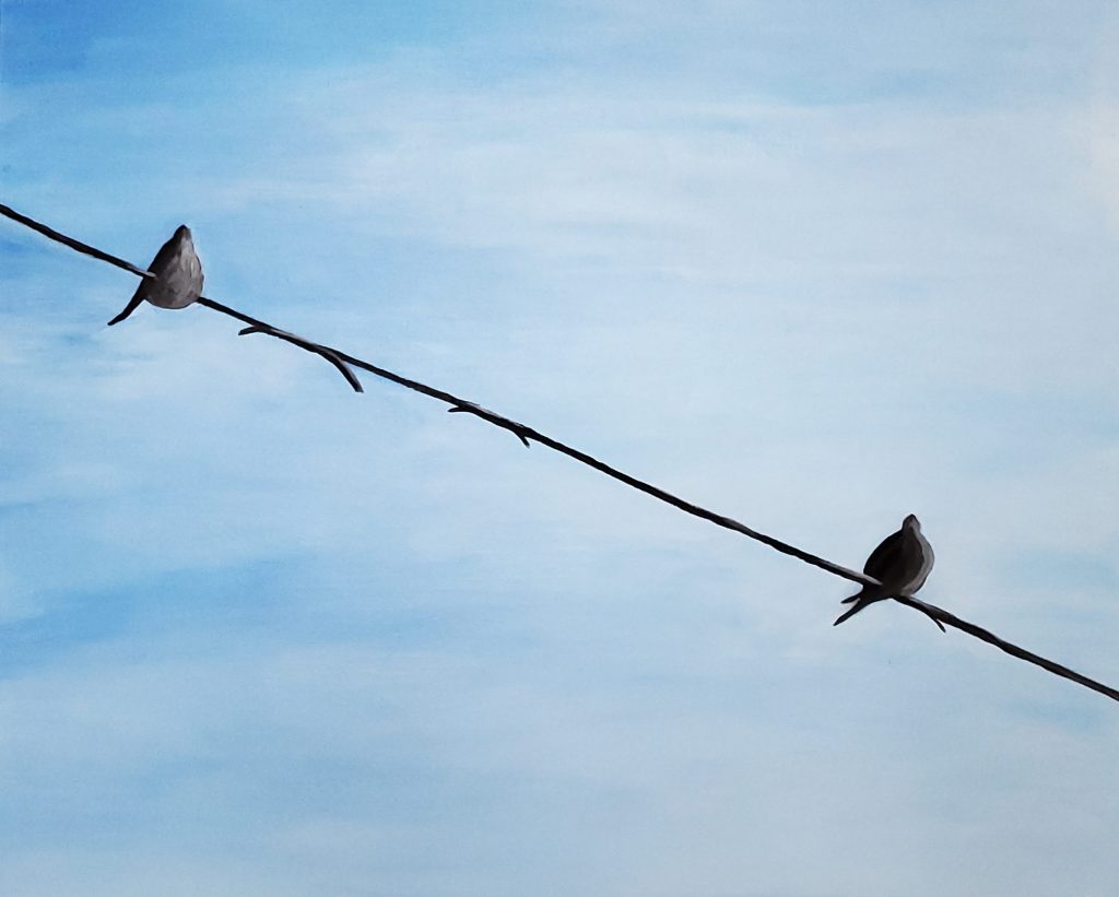 A duo of plump winter pigeons enjoying a winter’s day, in the background a stark blue sky and high wispy clouds blend together. A scene from a recent stay in Midtown Harrisburg, Pennsylvania.